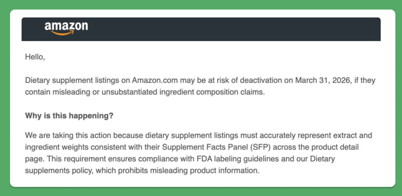 ‼️ Amazon Tightens Enforcement on Supplement Ingredient Claims
