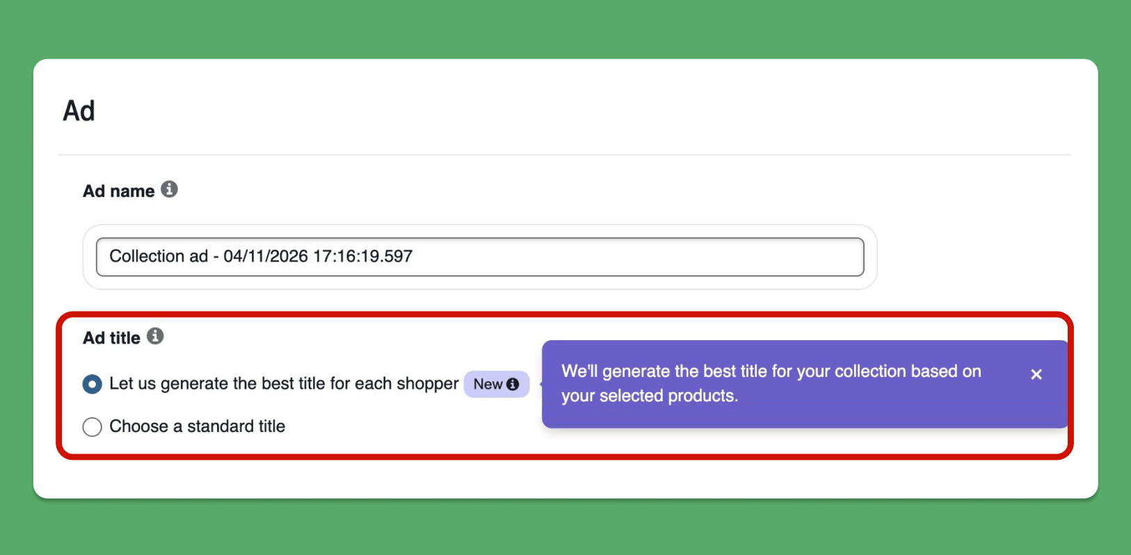 Auto-generated ad titles for each shopper