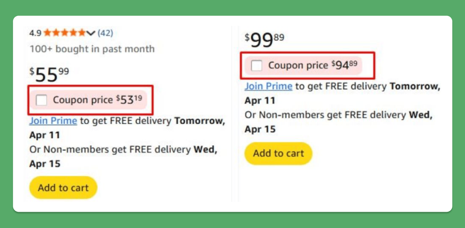 Amazon has changed how it displays coupons on product listings, now showing only the final discounted price instead of the percentage saved (e.g., “15% off”). This change removes a key visual indicator of savings.